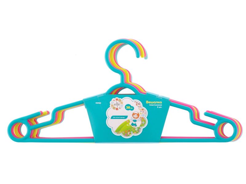 Комплект Elfe 92930 из 5 цветных пластиковых вешалок длиной 38 см каждая предназначен для хранения легкой одежды. Позволяет поддерживать вещи в идеальном состоянии без необходимости отглаживания. Поверхность вешалок предотвращает повреждение одежды из шелка и других деликатных тканей.