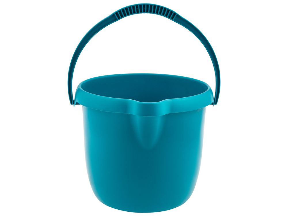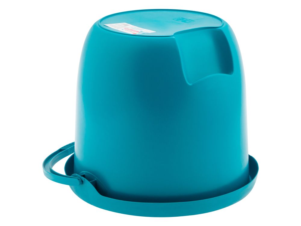 Пластмассовое круглое ведро Palisad Home 929575 объемом 12 л, бирюзового цвета, используется в бытовой сфере. Будет полезно дома и на даче для сбора мусора, хранения материалов, овощей, хозяйственных предметов, пригодится также во время уборки.