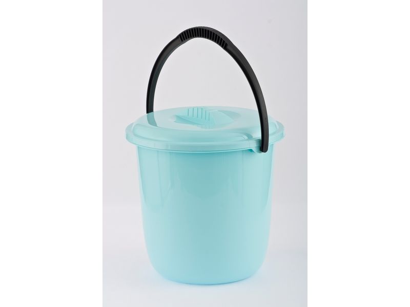 Ведро пластмассовое круглое 12л, с крышкой, бирюзовое -11916