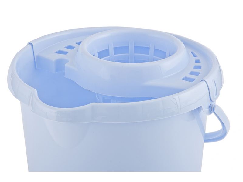 Пластиковое ведро с отжимом предназначено для влажной уборки помещения. Они комплектуются прочным отжимным блоком со специальными отверстиями и эргономичной ручкой. Для удобного слива воды в корпусе ведер предусмотрен носик и специальное углубление на внешней стороне днища для удержания ведра во время слива воды.