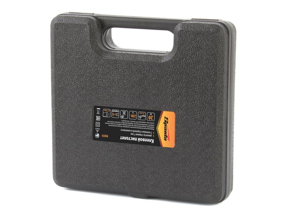 Клеевой пистолет Sparta 93019, 7 мм, 20 Вт, 5 г/мин, в кейсе, пригодится при проведении несложных бытовых работ: склеивания бумаги, дерева, пластика и других материалов. Он станет незаменимым помощником для частных мастеров, которые занимаются мелким ремонтом, упаковкой, сборкой различных моделей и рукоделием. Время нагрева до максимальной температуры не превышает 5,5 минут.