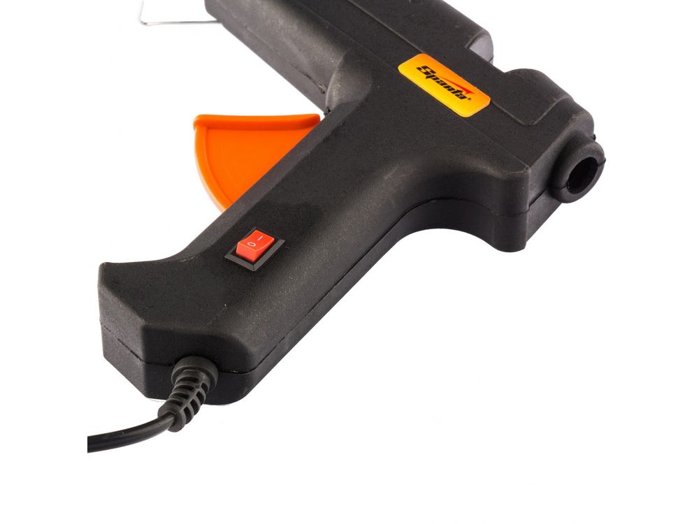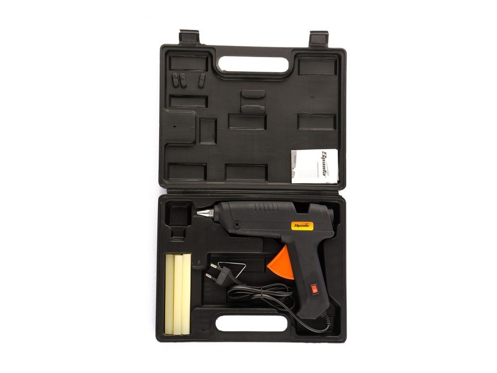 Клеевой пистолет с выключателем Sparta 93020 мощностью 80 Вт и производительностью 10 г/мин совместим со стержнями диаметром 11 мм и поставляется в кейсе. Пригодится для проведения несложных бытовых работ: склеивания бумаги, древесины, пластика и других материалов. Время нагрева до максимальной температуры не превышает 5,5 минут. Пистолет незаменим для частных мастеров, которые занимаются мелким ремонтом, упаковкой, сборкой различных моделей и рукоделием.