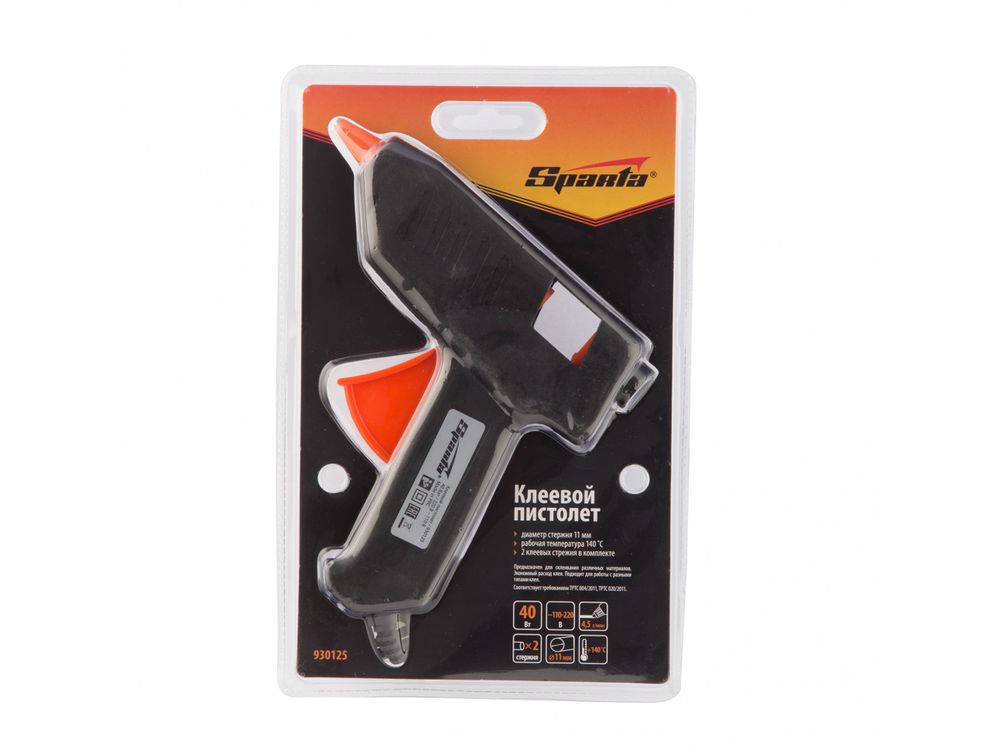 Клеевой пистолет Sparta 93021 мощностью 20 Вт и производительностью 2,5 г/мин совместим со стержнями диаметром 7 мм. Используется для проведения несложных бытовых работ: склеивания бумаги, дерева, пластика и других материалов. Инструмент пригодится частным мастерам при мелком ремонте, упаковке, сборке различных моделей и рукоделии.