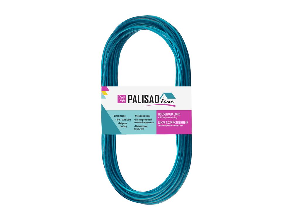 Хозяйственный шнур Palisad Home 937025 с полимерным покрытием, диаметром 3 мм и длиной 10 м, используется для сушки белья, связывания предметов и решения других задач. Будет полезен дома, на даче, в походе. В качестве сердечника использована стальная латунированная проволока, поэтому шнур не растягивается со временем.