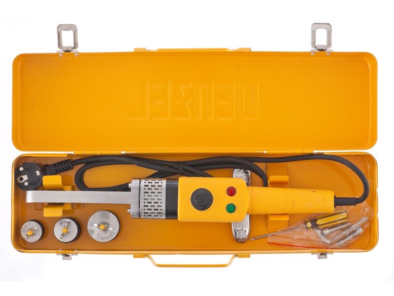 Аппарат для сварки пластиковых труб Denzel DWP-800 X-PRO 94207 мощностью 800 Вт, с комплектом насадок диаметром 20-32 мм, работает при температуре 260-300 Град. Используется для сварки полиэтиленовых и полипропиленовых труб путем их нагрева, размягчения и последующего соединения под давлением. Оптимально подходит для самостоятельного обновления водопровода, ремонта труб, монтажа отопительной и канализационной систем в частном доме или квартире. Три сменные насадки позволяют соединять трубы диаметром 20, 25 и 32 мм.