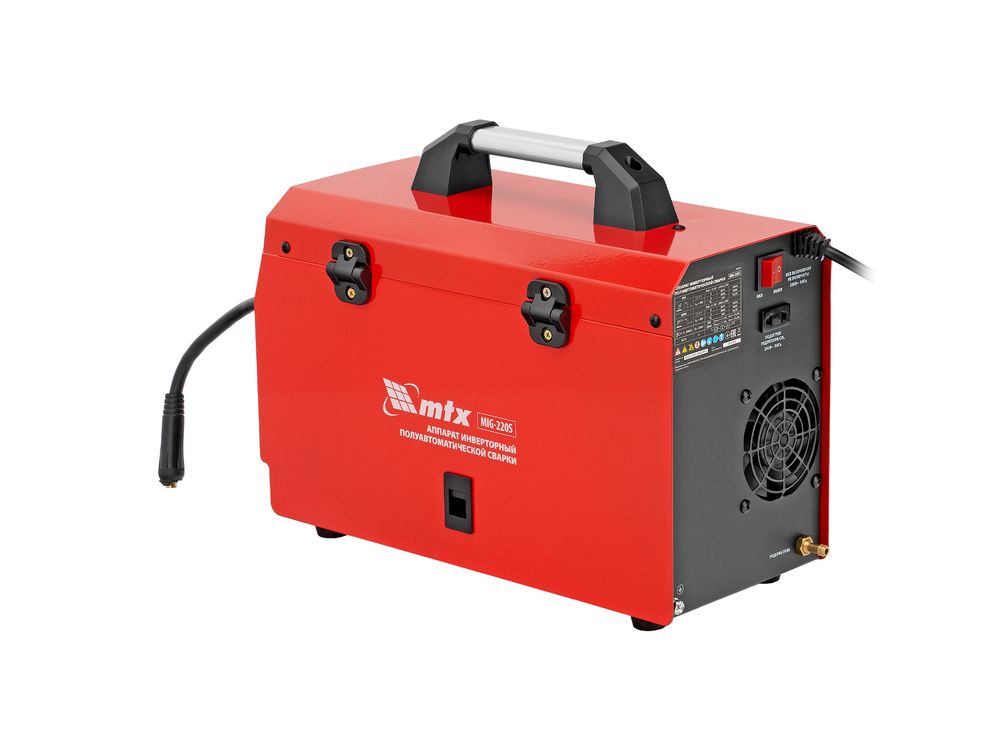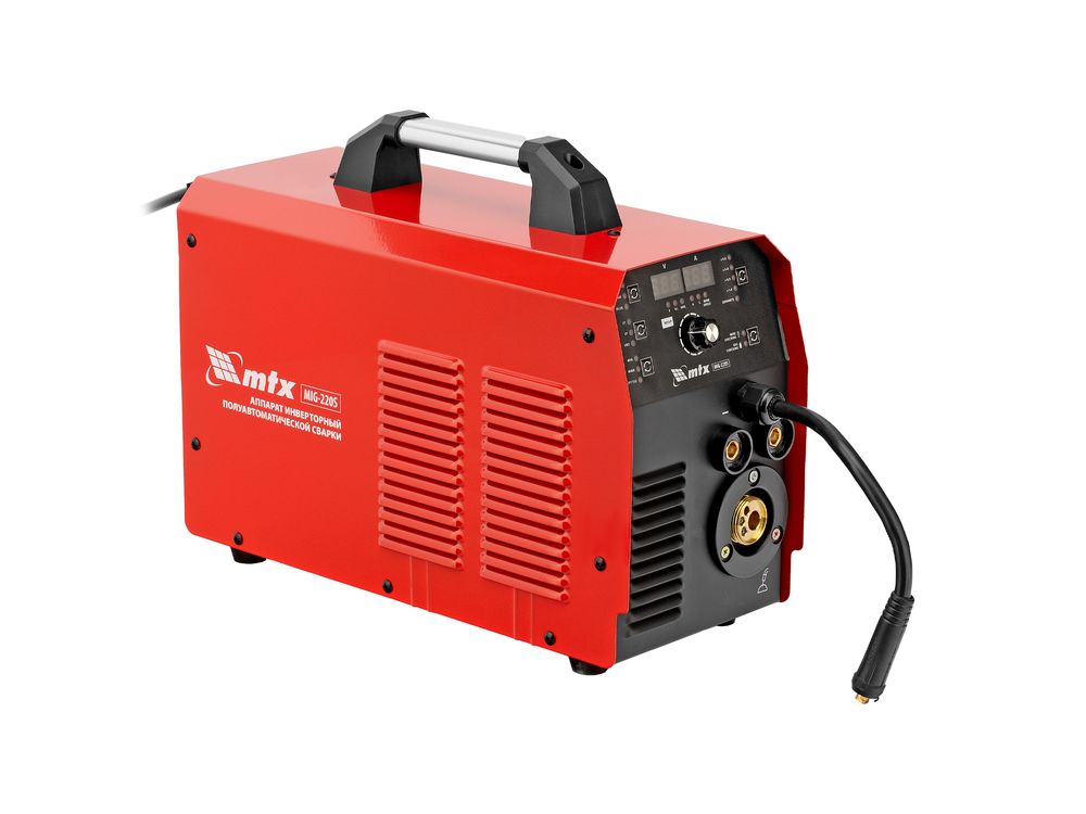 Инверторный аппарат полуавтоматической сварки MTX MIG-220S 94304, предназначенный для сварки на максимальном токе до 220 А, имеет продолжительность включения 60% и совместим с катушками весом до 5 кг. Используется для работы со сталями, черными и цветными металлами. Сварочный аппарат изготовлен с использованием передовой технологии IGBT, позволяющей получать стабильный сварочный ток на выходе. Аппарат имеет высокий КПД при низком энергопотреблении, способен работать при пониженном до 180 В напряжении.