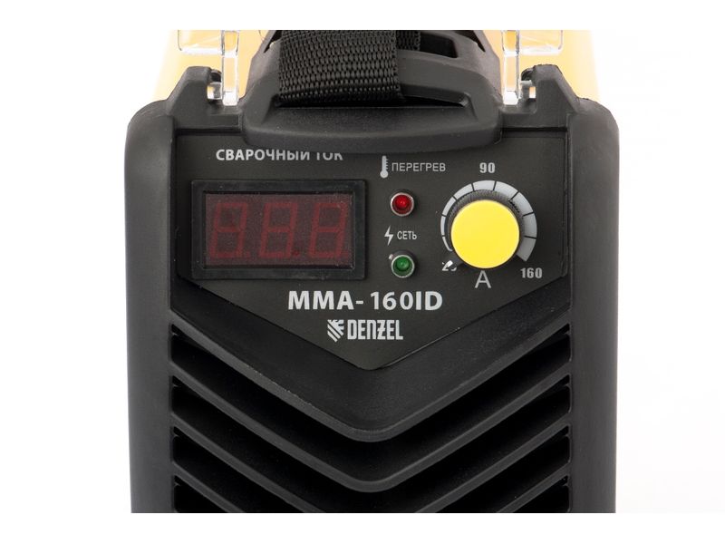 Аппарат инверторной дуговой сварки Denzel MMA-160ID 94345 с проводом длиной 2 м характеризуется величиной ПВР 60% и позволяет работать с максимальным сварочным током 160 А электродами диаметром 1,6-3,2 мм. Представляет собой компактный аппарат для бытового использования на даче, в гараже или мастерской. Уверенно работает даже при нестабильном входном напряжении в диапазоне 150-250 В, удобен для сварки в малодоступных местах.