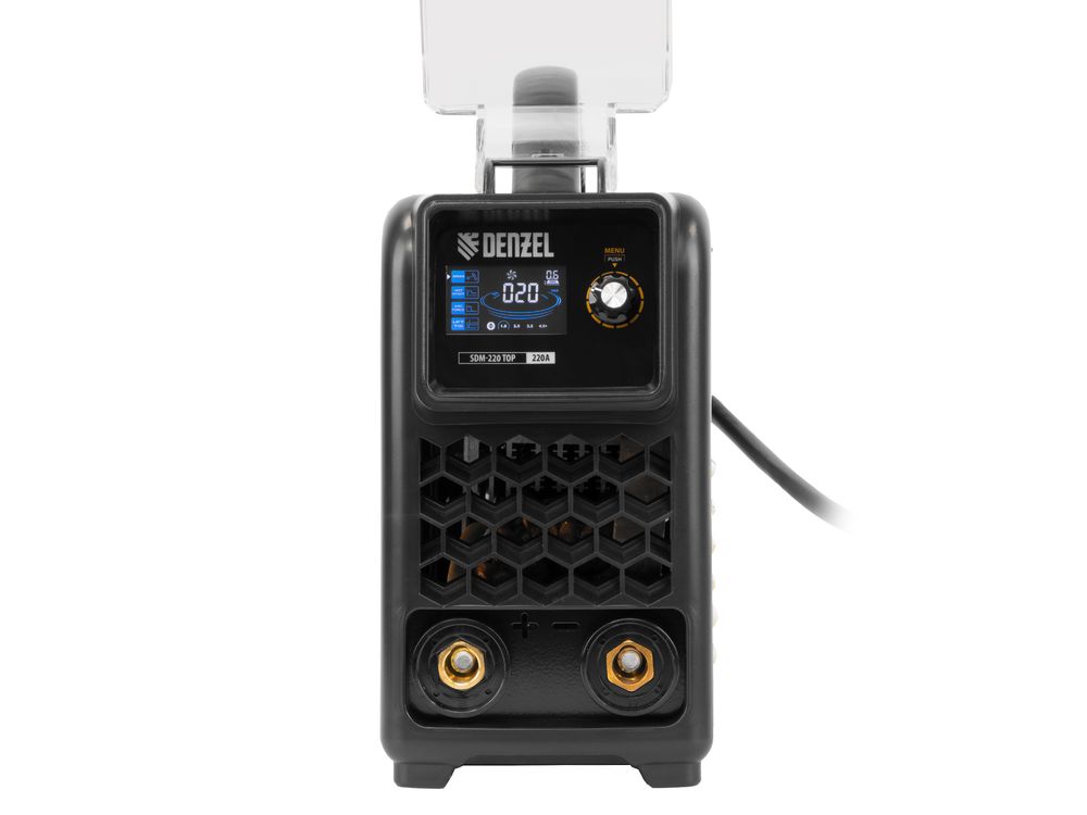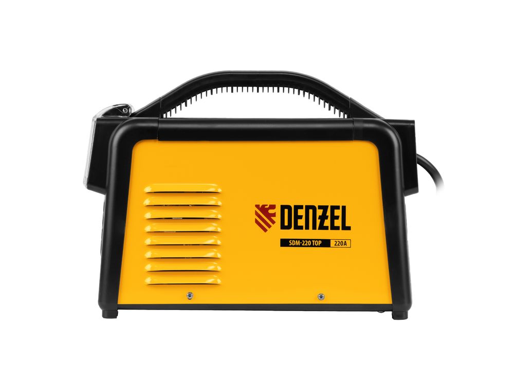 Инверторный аппарат дуговой сварки Denzel SDM-220 Top 94358, поставляется в кейсе, характеризуется продолжительностью включения 60% и работает со сварочным током до 220 А. Предназначен для сварки штучными электродами диаметром до 5 мм изделий из низкоуглеродистых сталей в режиме MMA, а также аргонодуговой сварки неплавящимся электродом TIG LIFT оптимальной для заготовок из чугуна и алюминия (горелка приобретается отдельно).,Основное достоинство линейки Denzel SDM — синергетическое управление, значительно облегчающее подбор оптимальных параметров сварки. Аппарат дает возможность указать толщину свариваемого металла, после чего автоматически подбирает оптимальный сварочный ток и диаметр электрода. И наоборот: достаточно установить требуемое значение сварочного тока и на дисплее отобразится минимальная рекомендованная толщина свариваемых деталей, а также диаметр электрода. Аппарат эффективно работает даже при нестабильном напряжении, предназначен для использования в профессиональной сфере и в быту.