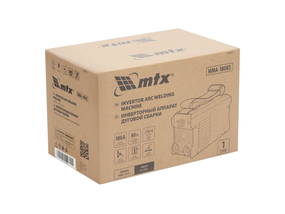 Сварочный аппарат MTX MMA-180BS 94397 предназначен для ручной дуговой сварки и наплавки покрытым электродом заготовок из низкоуглеродистой стали при постоянном токе до 180 A. Работает с электродами диаметром 1,6-4 мм. Продолжительность включения при максимальном токе составляет 60%. Аппарат изготовлен с использованием современных электронных компонентов и стабильно работает даже при пониженном напряжении величиной от 150 В. Пригодится сотрудникам коммунальных служб, также будет полезен в быту.