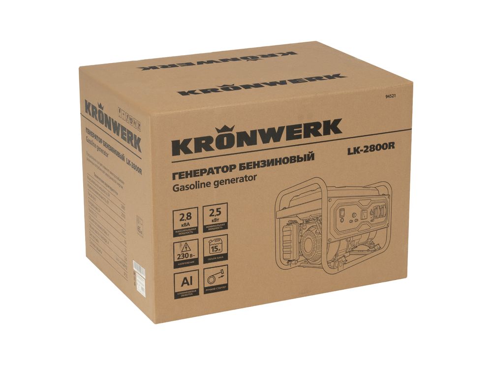 Генератор бензиновый LK-2800R, 2,8 кВт, 230В, ручной стартер Kronwerk-126