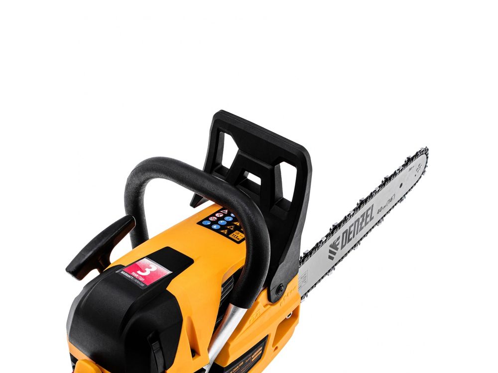 Пила цепная бензиновая Denzel DS-4516 95236 мощностью 2,5 л.с. оснащена двигателем объемом 45 см3 и поставляется с высокопроизводительной пильной гарнитурой: шиной длиной 40 см, цепью с 64 звеньями шагом 0,325 и пазом 1,5 мм. Используется для заготовки дров, распиловки древесины, при проведении ремонтных, строительных и садовых работ. Мощный и экономичный двухтактный двигатель позволяет эффективно и быстро решать поставленные задачи.