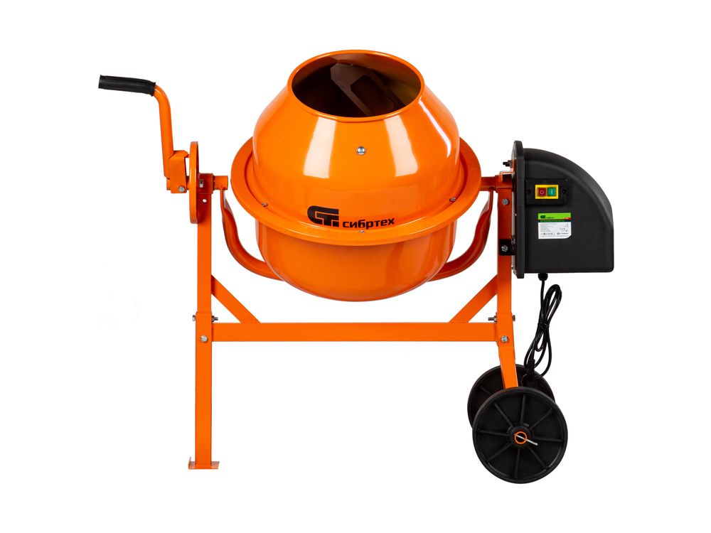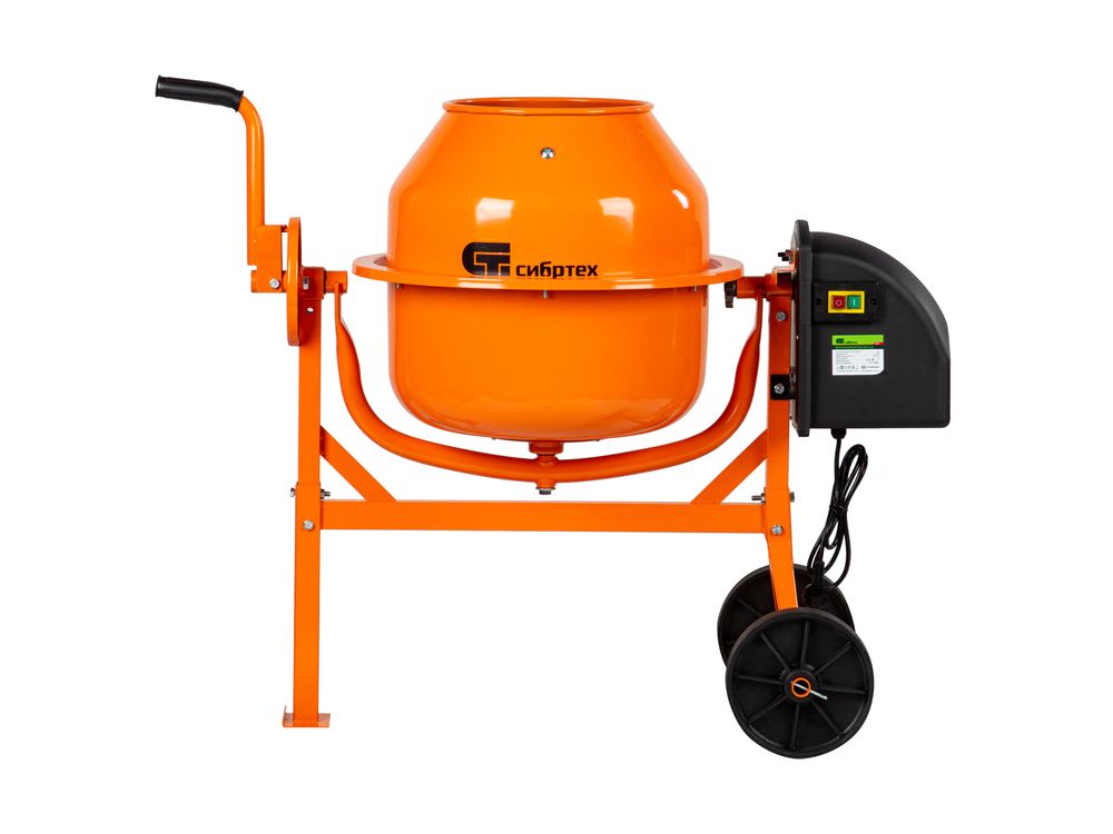 Бетоносмеситель Сибртех БСЛ-63 95469 объемом 63 литра и мощностью 300 Вт применяется при производстве штукатурки для отделки стен, подвижных бетонных растворов для работ с фундаментом и стяжки пола, клеевых смесей для укладки плитки. Малый размер барабана позволяет использовать устройство в небольших помещениях, без труда перемещая его в нужное место. При максимально допустимом заполнении на выходе получится до 40 л готовой смеси. Венец из прочной перфорированной стали выдерживает несколько рабочих циклов с небольшими перерывами, что позволяет ускорить процесс работы.
