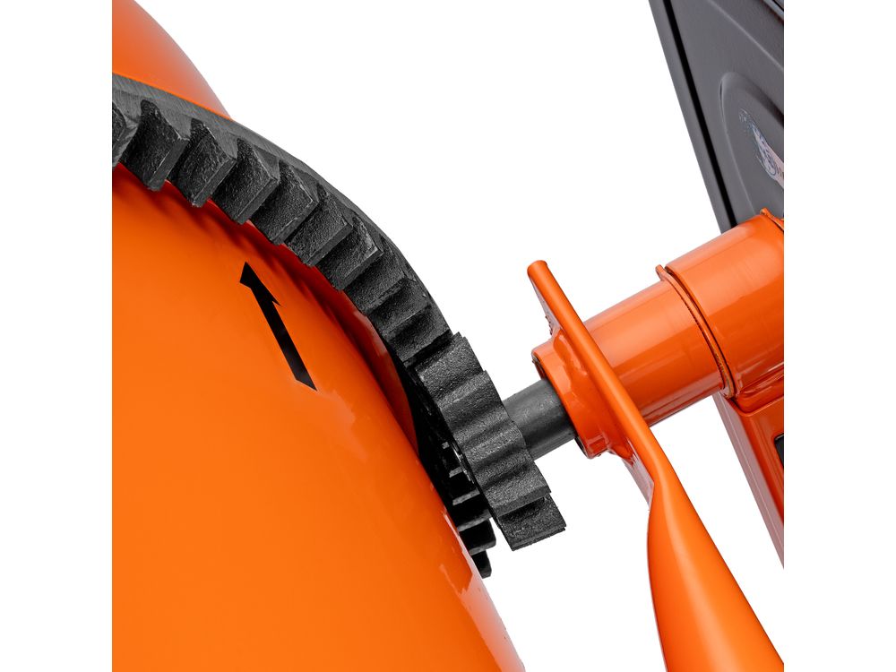 Удобная загрузка и выгрузка смеси — барабан наклоняется при помощи маховика и легко фиксируется в нужном положении.