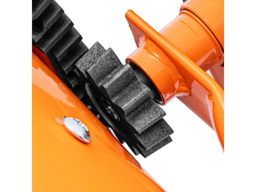 Удобная загрузка и выгрузка смеси — барабан наклоняется при помощи маховика и легко фиксируется в нужном положении.
