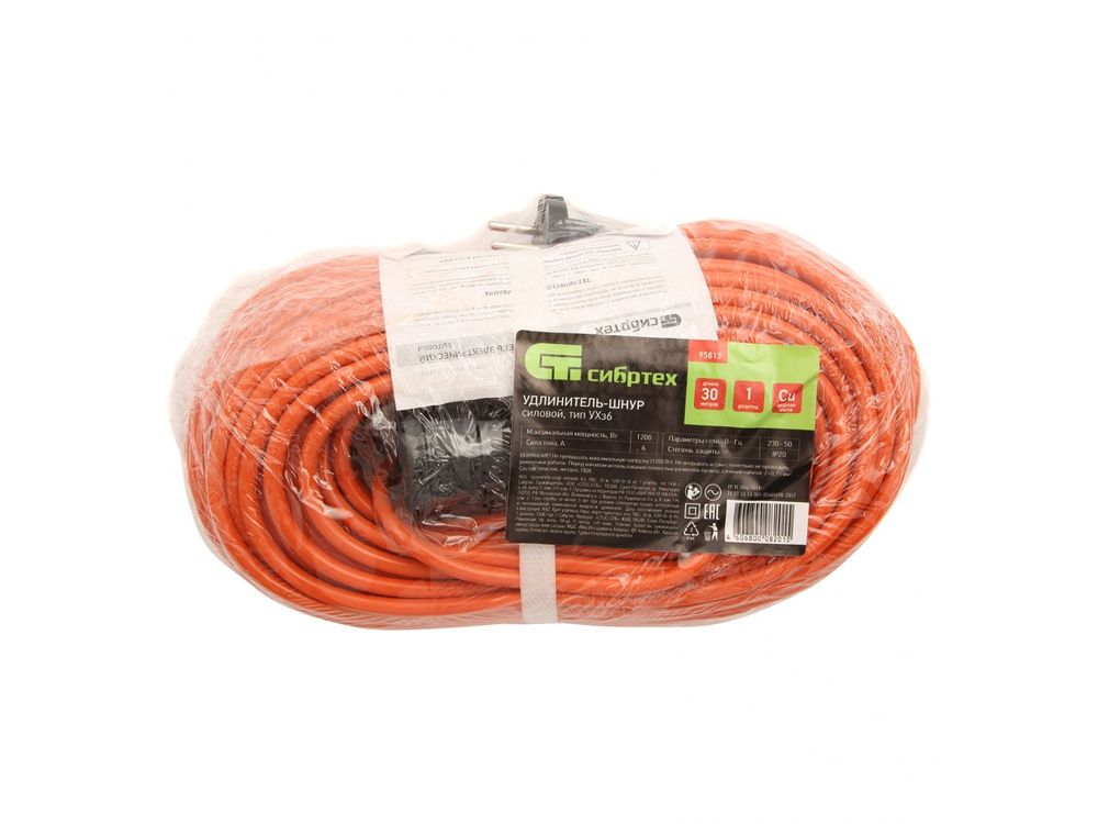 Удлинитель-шнур силовой, б/з, ПВС, 30м, 1200 Вт (6А), 1 розетка, тип УХз6-684