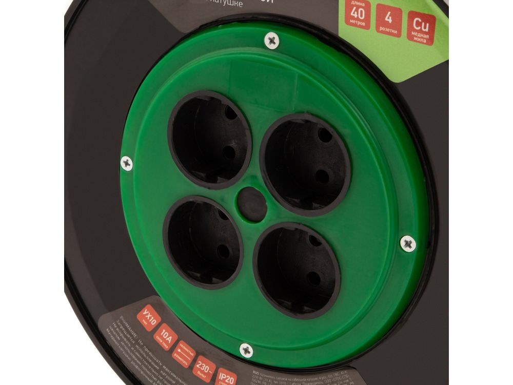 Удлинитель силовой на кабельной катушке, 4 роз б/з, ПВС, 30м, 2200 Вт (10А), тип УХ10-684