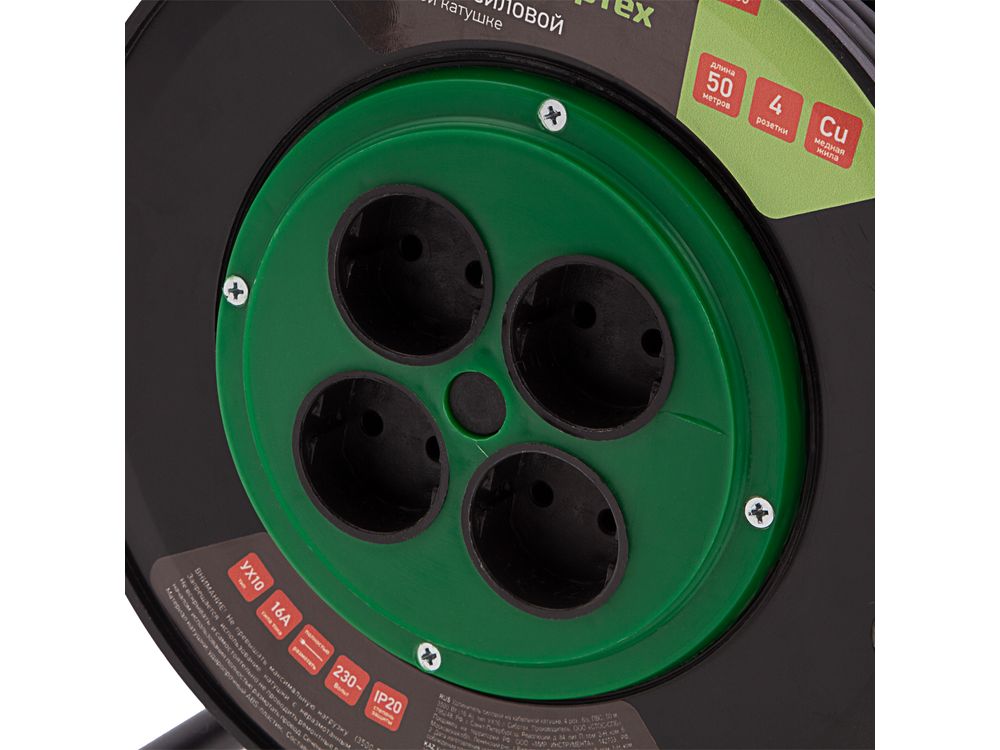 Удлинитель силовой 50 м, 16А, тип УХ10, ПВС, на кабельной катушке, 4 розетки без заземления