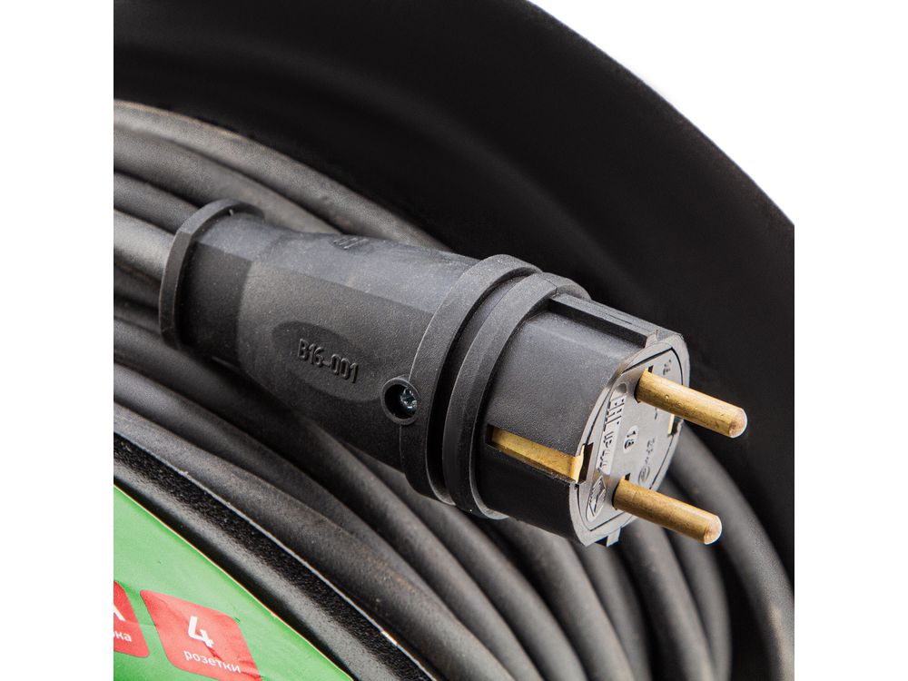 Удобная эксплуатация — эргономичная рукоятка позволяет быстро разматывать и сматывать кабель.