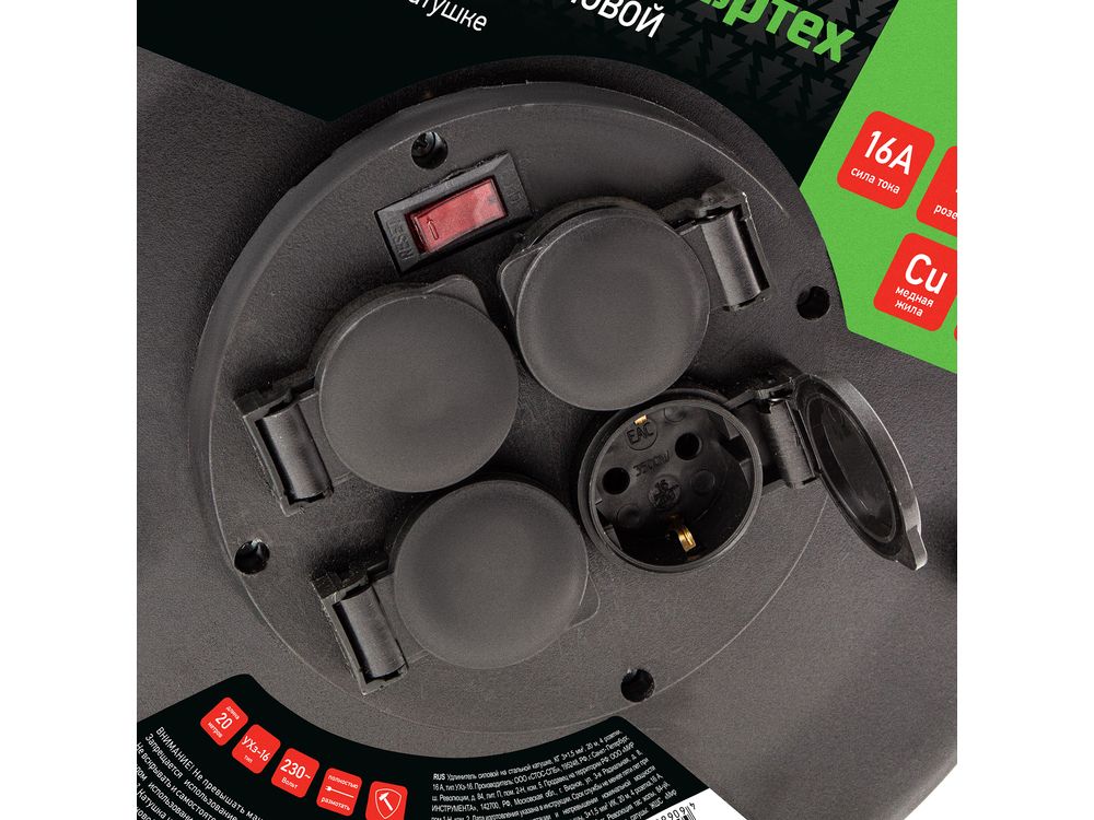 Удлинитель силовой 20 м, 16А, тип УХз16, КГ 3 x 1.5 мм, на стальной катушке, 4 розетки