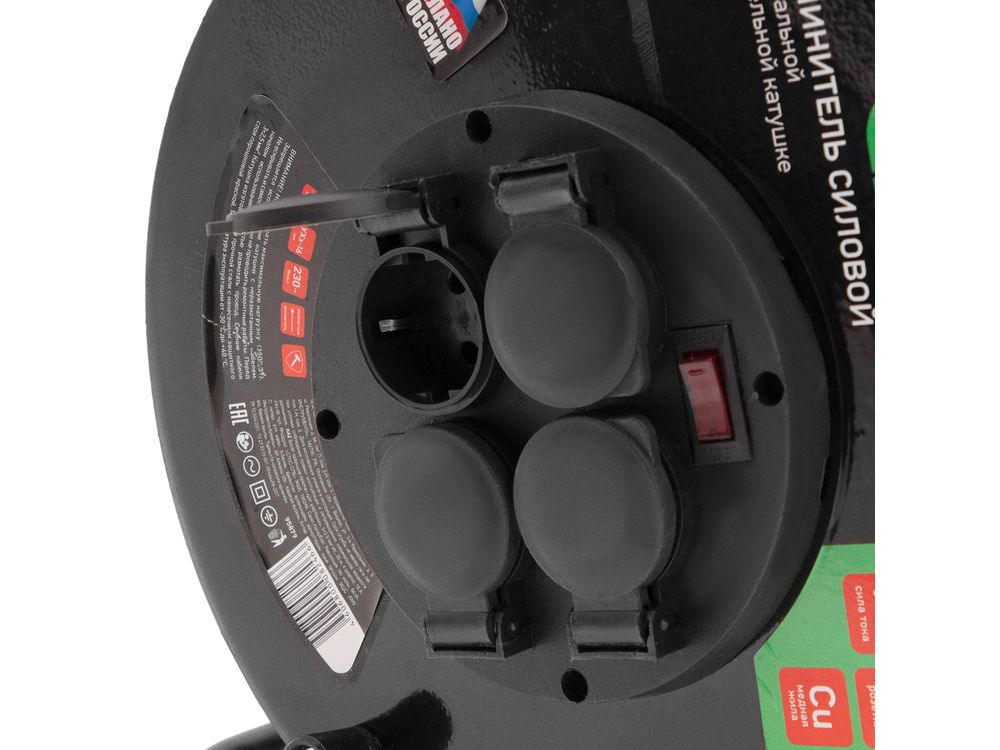 Удлинитель силовой 30 м, 16А, тип УХз16, КГ 3 x 2.5 мм, на стальной катушке, 4 розетки
