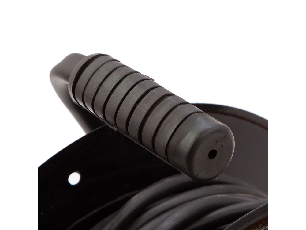 Удобная ручка позволяет быстро разматывать и сматывать кабель.