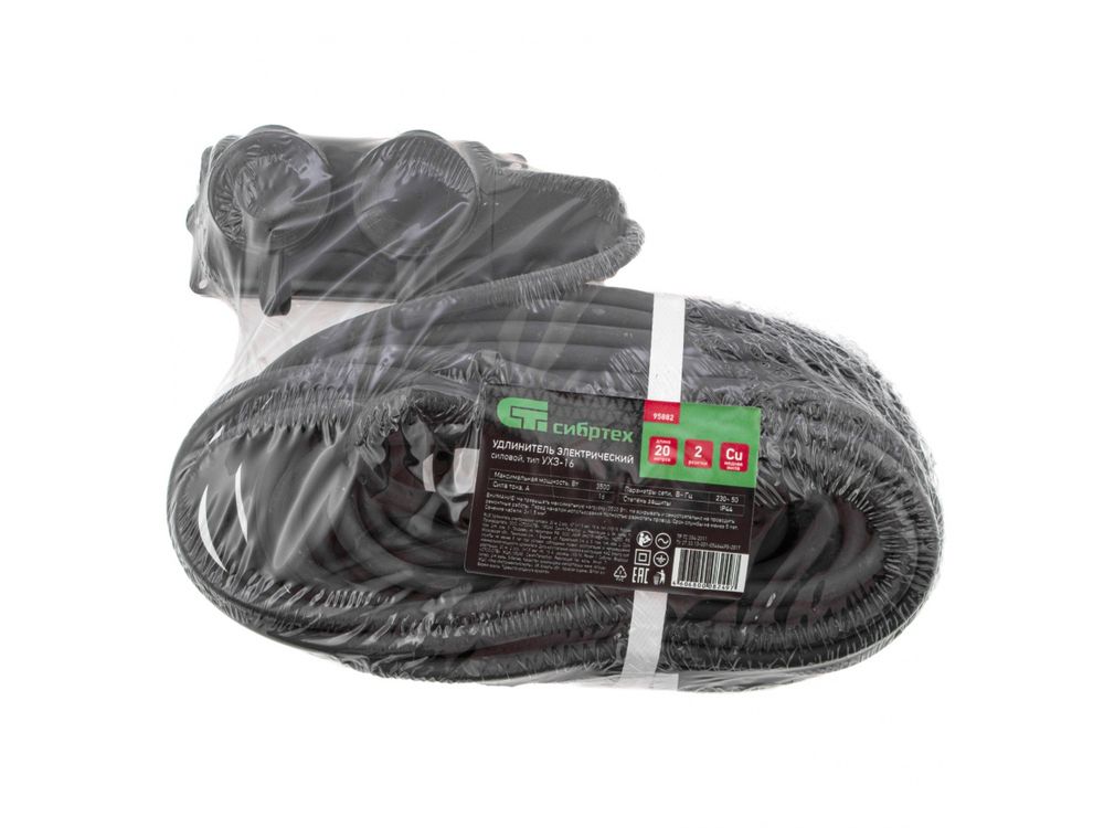 Силовой удлинитель Сибртех 95882, тип УХЗ-16, 16 А, тип кабеля КГ 3 х 1,5 мм, с 2 розетками, позволяет подключать электрооборудование к сети на расстоянии до 20 м от стационарного источника электроснабжения. Медножильный кабель выдерживает нагрузку до 3500 Вт и рассчитан на длительное использование. Розетки закрываются защитными крышками, предотвращающей попадание грязи и влаги на разъемы. Сетевой удлинитель используется в строительстве и на производстве.