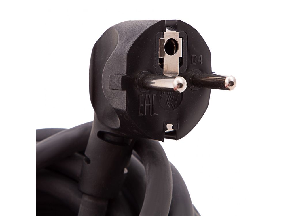 Защита пользователя — вилка изготовлена из каучука, розетка имеет заземляющий контакт.