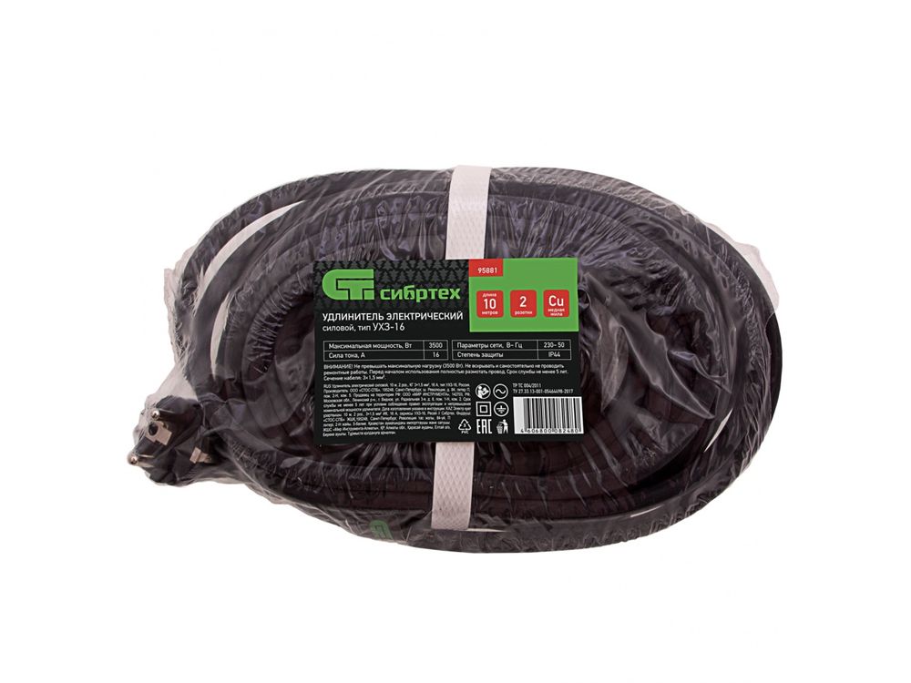 Купить Удлинитель силовой 10 м, 16 А, тип УХз16, КГ 3 x 1. 5 мм, 1 розетка, Россия Сибртех