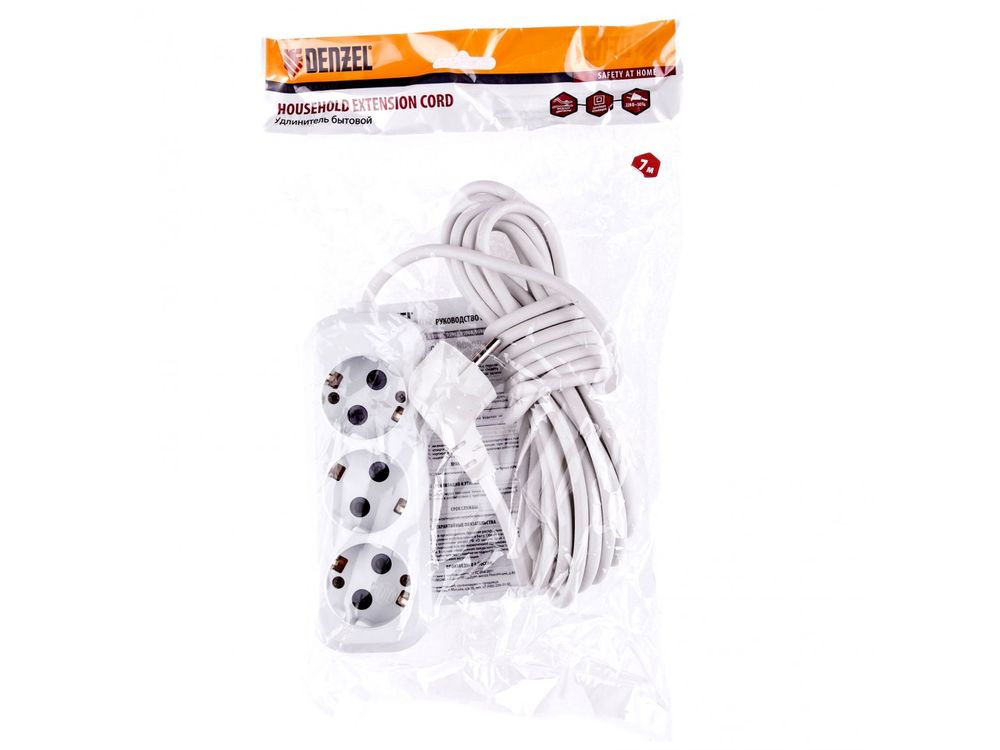 Удлинитель бытовой, серия УХз-10-307, с заземлением, 7 м, 3 розетки, 10 А-684