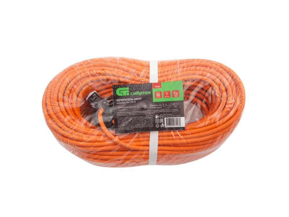 Силовой удлинитель-шнур Сибртех 96054, тип УХ10, 10 A, с 1 розеткой, позволяет подключать к электросети электроприборы мощностью до 2200 Вт на расстоянии до 50 м от источника электроснабжения. Яркий оранжевый кабель хорошо заметен даже в густой траве и среди строительного мусора. Сетевой удлинитель используется во время строительных и монтажных работ, а также пригодится дома, на даче или в гараже.