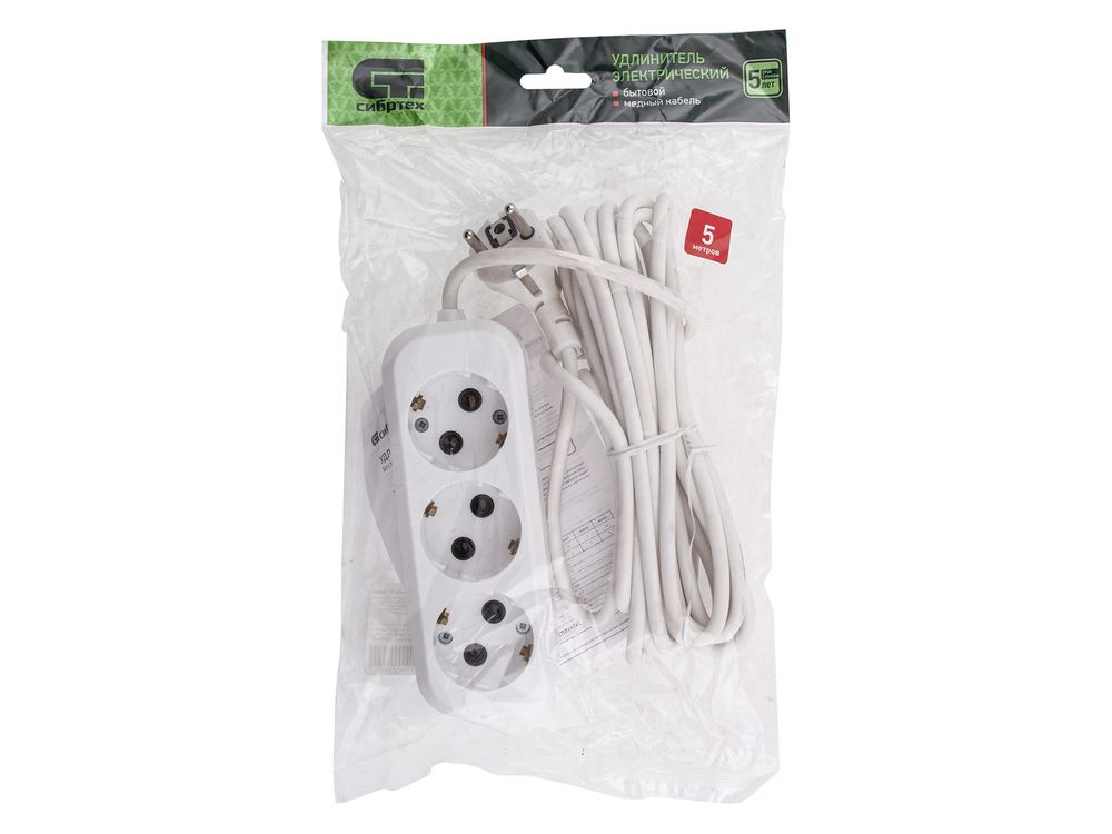 Удлинитель бытовой тип УХз-10, с заземлением, 5м, 3 розетки, 10A-684