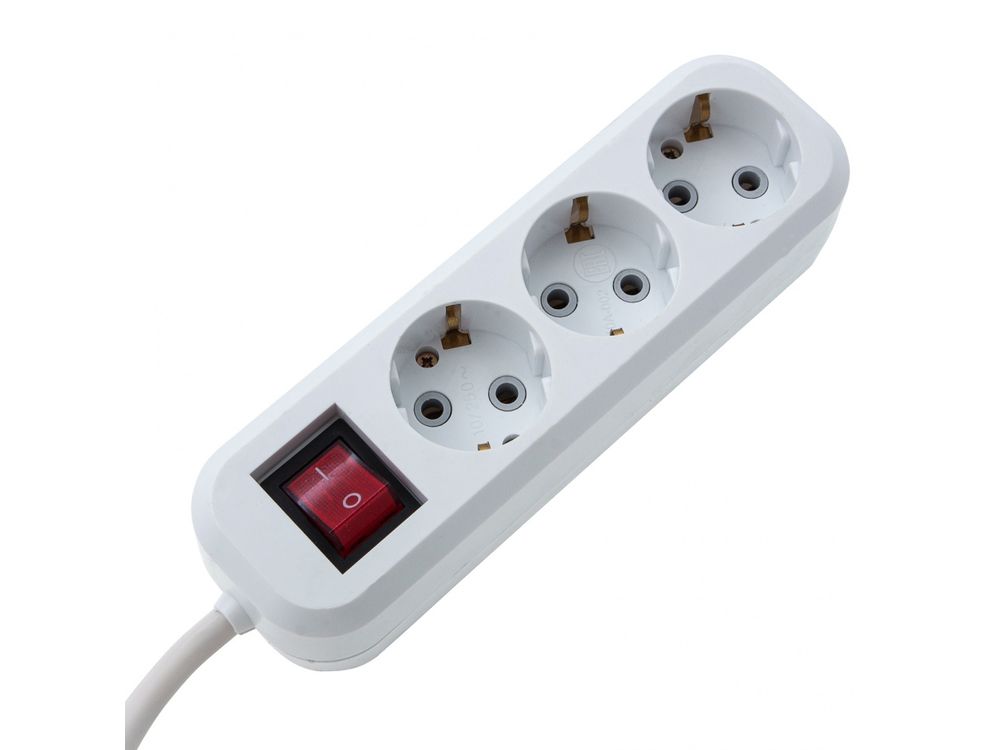 Удлинитель бытовой, с заземлением и выключателем, 3м, 3 розетки, 10A, тип УХз10,