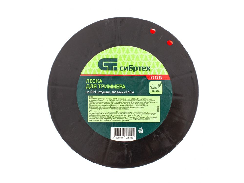 Леска для триммера звезда, на DIN катушке, 2. 4 мм х 160 м, Россия Сибртех
