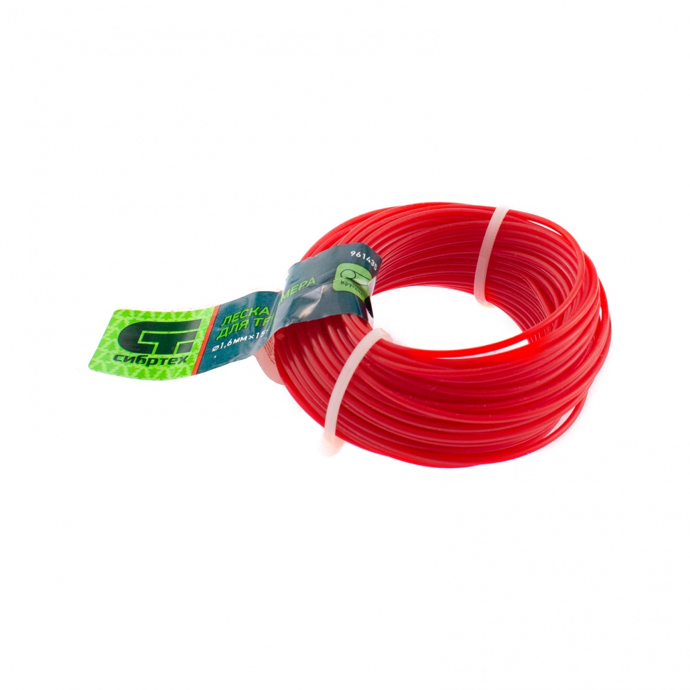 Леска Сибртех 961435 с круглым сечением, диаметром 1,6 мм и длиной 15 м, заправляется в катушку маломощных электрических триммеров (300-600 Вт) с нижним расположением двигателя. С ее помощью можно косить молодую и газонную траву.