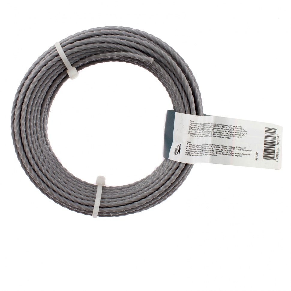 Купить Леска для триммера квадратная витая, армир. алюминием, 2,4 мм х 10 м, Россия