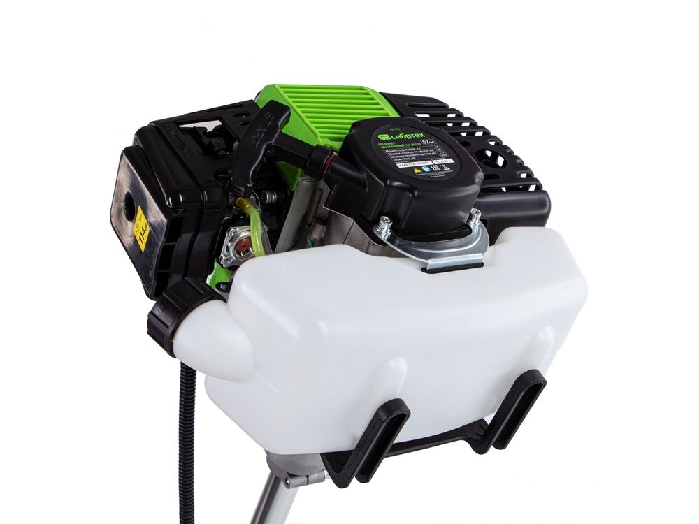 Бензиновый триммер Сибртех КС-3000Н 962555 с неразъемной штангой имеет двигатель увеличенного объема 52 куб. см, поставляется комплектом из 2 частей и предназначен для ухода за дачным участком. Используется для стрижки и скашивания травы, обработки границ газонов и борьбы с сорняками. Для эффективного решения этих задач предусмотрены катушка с леской и трехлопастный нож, легко срезающий густую траву и толстые стебли. Ширина скашивания леской составляет 42 см, ножом — 25,5 см, что в сочетании с мощностью двигателя 3 л. с. обеспечивает высокую производительность триммера.