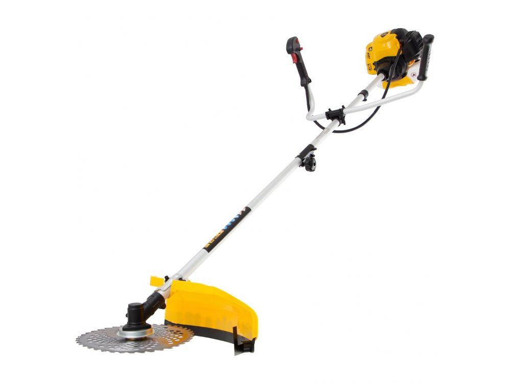 Бензиновый триммер Denzel DTL-33S 96262 с разъемной штангой, состоящей из 2 частей, оснащен 2-тактным двигателем объемом 33 см3. Предназначен для стрижки газона, скашивания травы всех типов, в том числе с жесткими древовидными стеблями (полыни, крапивы, лебеды, борщевика), а также срезания кустарника и молодых побегов деревьев с диаметром стволов до 10 мм. Усиленная катушка с леской и пильный диск, вращающиеся со скоростью 9500 об/мин, обеспечивают ширину скашивания 42 и 25,5 см. Инструмент не требует подключения к электросети, поэтому подходит для работы с влажной травой и может использоваться на отдаленных от дома участках.