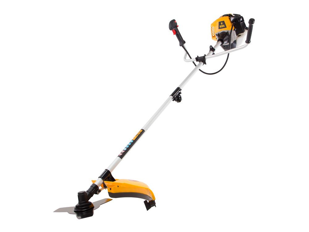 Бензиновый триммер Denzel DR-43S 96274 с двигателем объемом 43 см3 и разъемной штангой, состоит из 2 частей. Используется для ухода за газоном, скашивания травы различных типов, в том числе с жесткими стеблями (полынь, крапива, лебеда). Триммер эффективен на сложных участках: вдоль стен, в ямках и на возвышенностях, вокруг деревьев. Две режущие насадки — трехлопастный нож и катушка с леской — вращаются со скоростью 9500 об/мин, обеспечивая ширину скашивания 25,5 и 42 см. ,Эффективную работу инструмента обеспечивает двухтактный двигатель мощностью 2,5 л.с. При этом триммер экономично расходует топливо, поэтому часто заправлять его не придется.