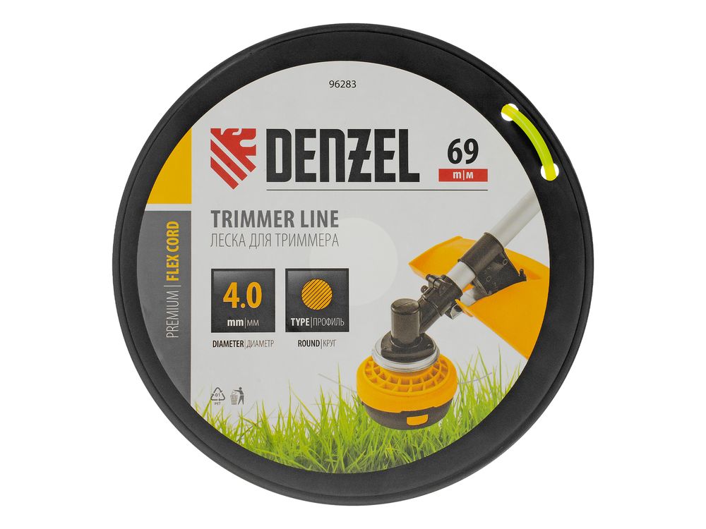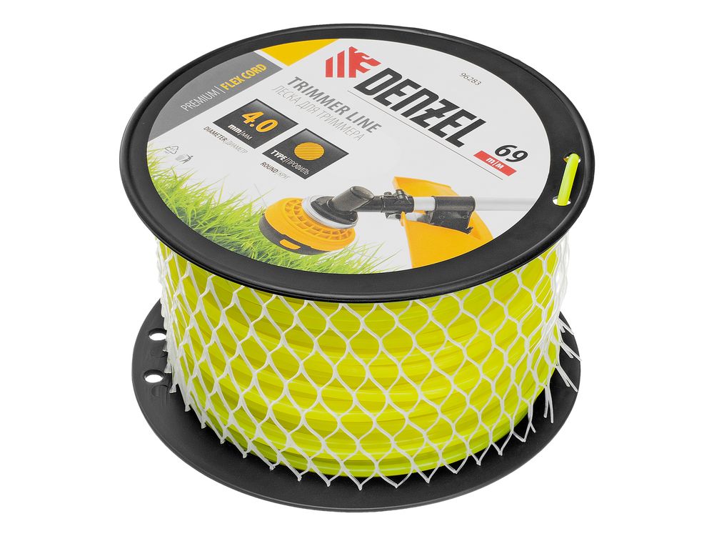Леска для триммера Denzel FLEX CORD 96283 круглого сечения, диаметром 4,0 мм и длиной 69 м, на DIN-катушке, предназначена для скашивания как мягкой, молодой травы, так и густой растительности, бурьяна. Подходит для бензиновых триммеров с объемом двигателя более 25-52 см3.