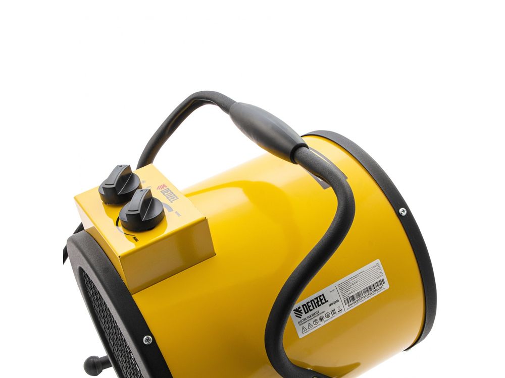 Тепловая пушка профессиональной серии Denzel SFH-5000 96438 питается от сети 230 В и генерирует воздушный поток мощностью 260 м3/ч. Работает в одном из 3 режимов: вентилятор, обогрев на мощности 2250 и обогрев на мощности 4500 Вт. Используется в складских, производственных, общественных помещениях площадью до 45 м2. Подходит для дистанционной просушки поверхностей, например, окрашенных или оштукатуренных стен во время отделочных работ.