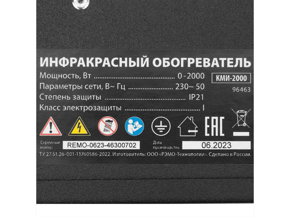 Инфракрасный обогреватель MTX КМИ-2000 96463 с плавной регулировкой мощности в диапазоне 500-2000 Вт работает от сети 230 В и предназначен для обогрева бытовых помещений. Служит основным источником тепла на площади до 20 м2 и дополнительным — в помещениях площадью до 40 м2. Обеспечивает комфортный микроклимат, поскольку не сушит воздух и не сжигает пыль. Благодаря оптимальной длине волны 5,9 мкм безопасен для здоровья пользователя. Инфракрасные лучи нагревают окружающие поверхности, а не воздух, что позволяет снизить затраты на электроэнергию. Устройство может быть установлено внутри помещений, на крытых верандах, в беседках и теплицах. Сделано в России.