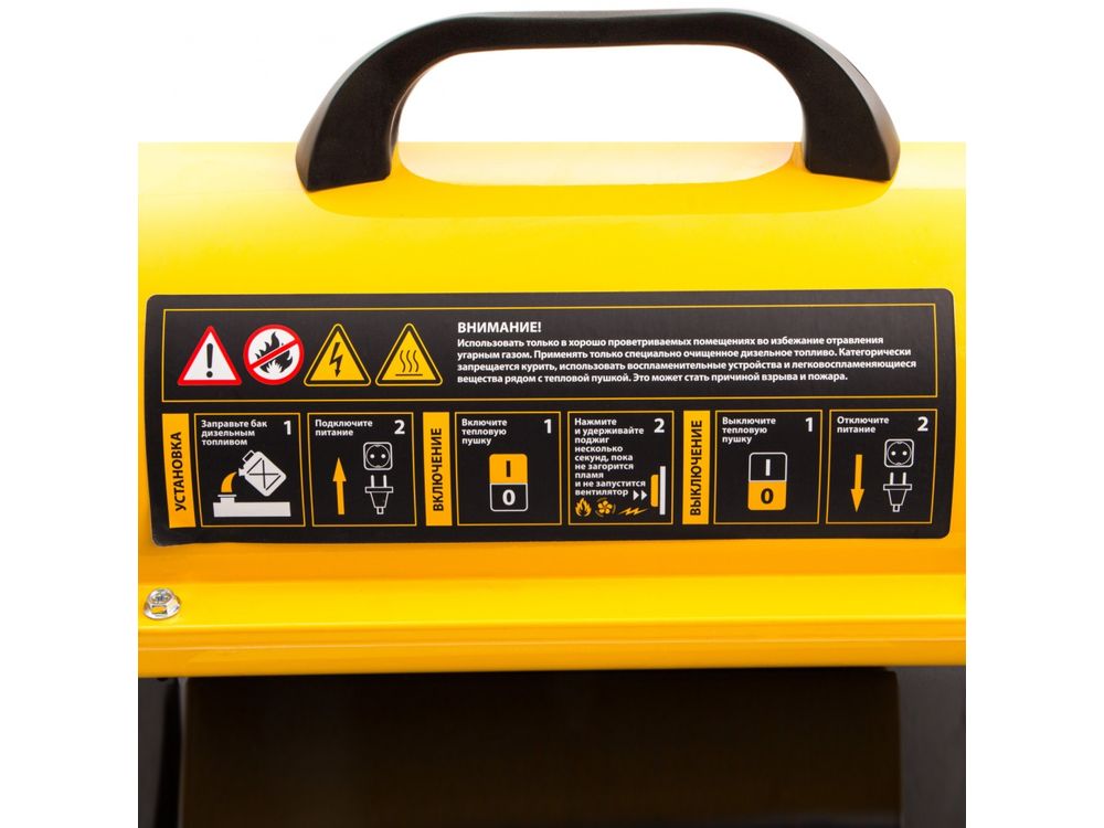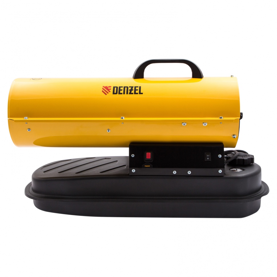 Дизельная тепловая пушка Denzel DHG-20 96482 мощностью 20 кВт и производительностью 500 куб. м/ч предназначена для прямого нагрева воздуха в цехах, ангарах, хранилищах и других нежилых помещениях с хорошей вентиляцией. Максимальная площадь обогрева составляет 200 кв. м. Пушка служит эффективным источником тепла в полярных экспедициях. Пригодится также на строительной площадке для прогрева бетона, просушки стен и разморозки траншей. Для заправки может использоваться любое дизельное топливо: летнее, зимнее и арктическое.