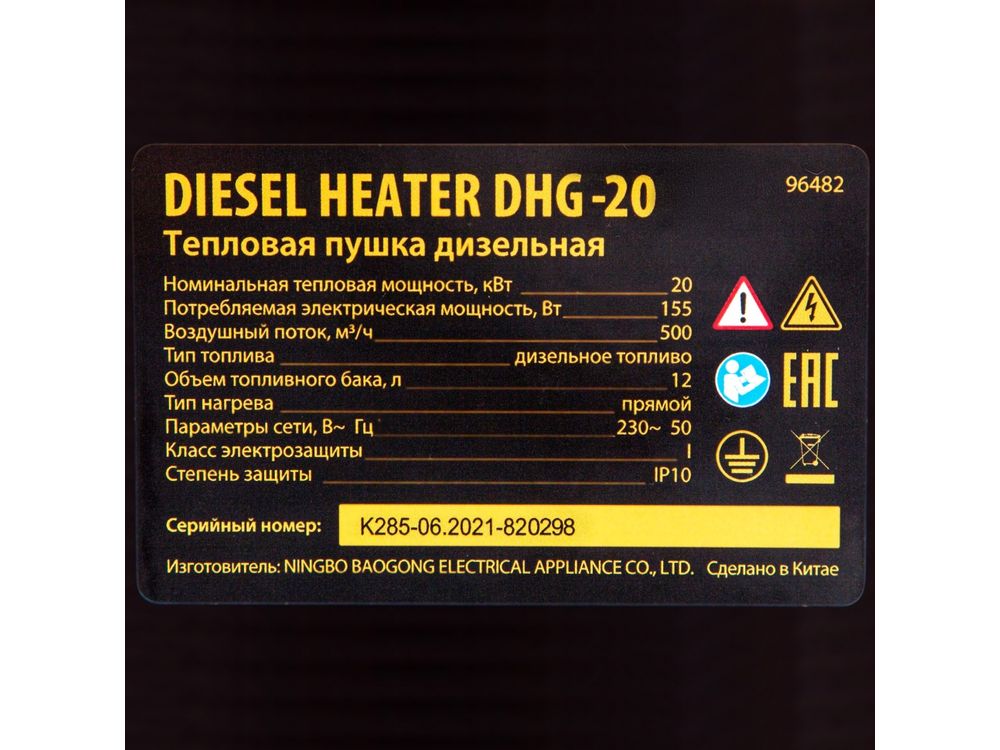 Дизельная тепловая пушка DHG-20, 20 кВт, 500 м3/ч, прямой нагрев