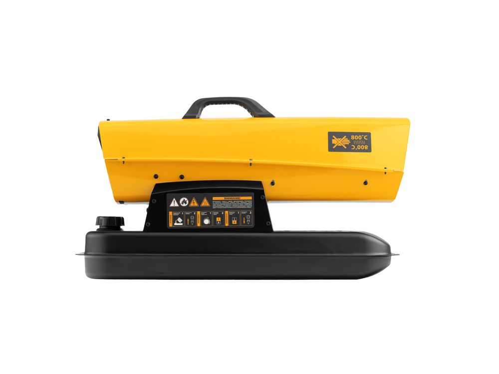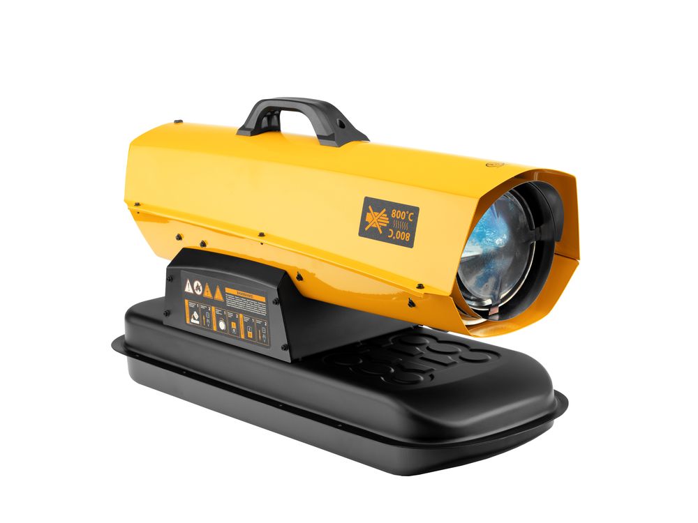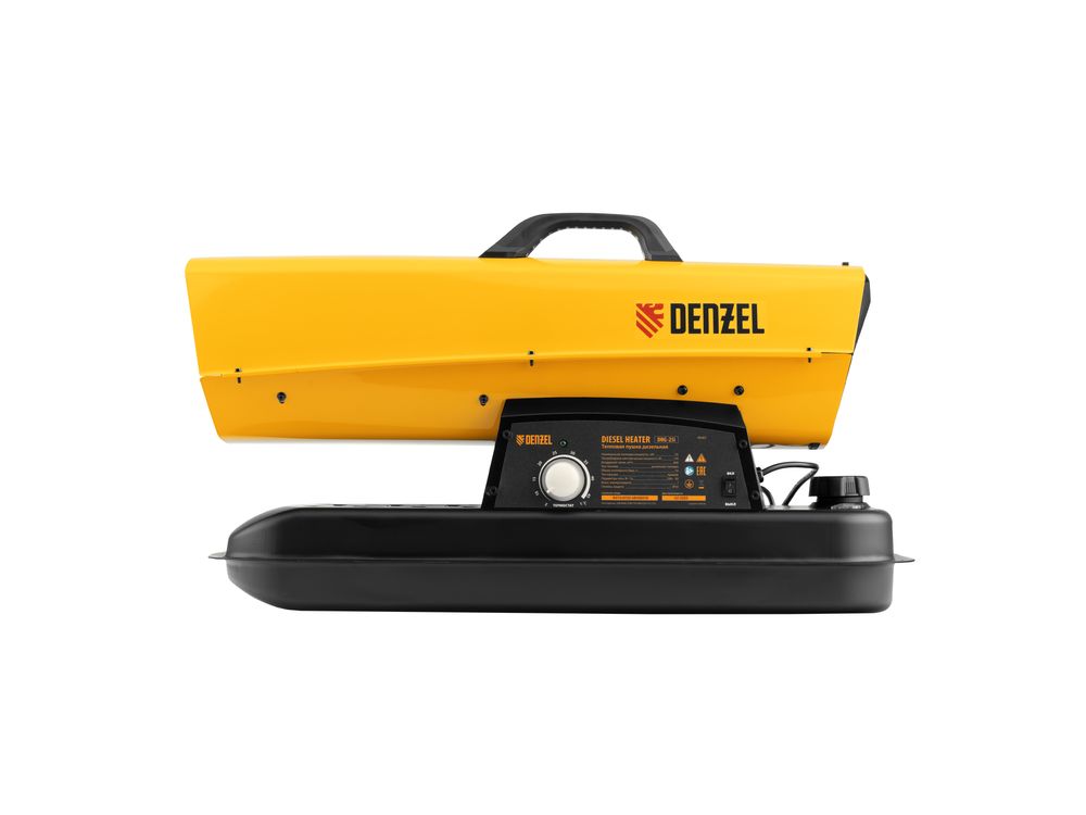 Дизельная тепловая пушка Denzel DHG-25i 96483 номинальной тепловой мощностью 25 кВт и производительностью 600 куб. м/ч, с прямым типом нагрева, с электронным термостатом, предназначена для обогрева цехов, складов, теплиц и других нежилых помещений. Используется в строительстве и на производстве. Пушка характеризуется низким расходом топлива: полного бака хватает на 10 часов работы. Важно: в обогреваемом помещении необходимо обеспечить хорошую вентиляцию.