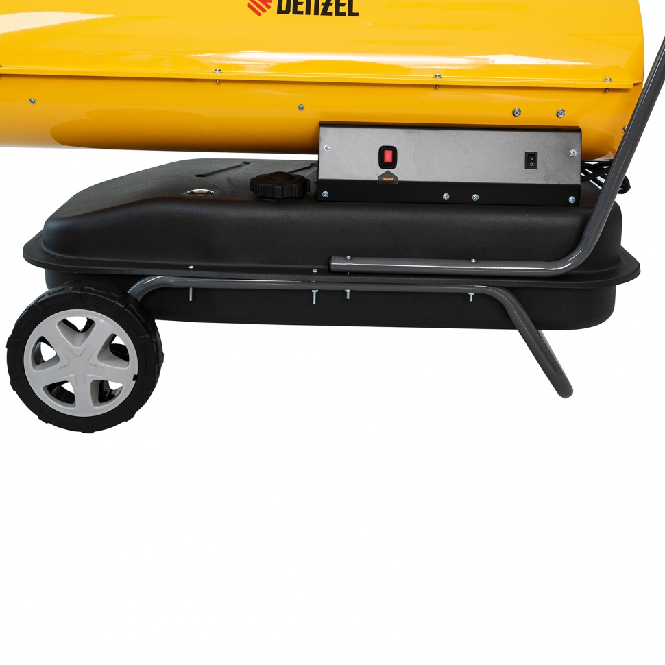 Дизельная тепловая пушка Denzel DHG-50 96486 мощностью 50 кВт и производительностью 1100 куб. м/ч предназначена для прямого нагрева воздуха в цехах, ангарах, хранилищах и других нежилых помещениях с хорошей вентиляцией. Максимальная площадь обогрева составляет 500 кв. м. Пушка служит эффективным источником тепла в полярных экспедициях. Пригодится также на строительной площадке для прогрева бетона, просушки стен и разморозки траншей. Для заправки может использоваться любое дизельное топливо: летнее, зимнее и арктическое.