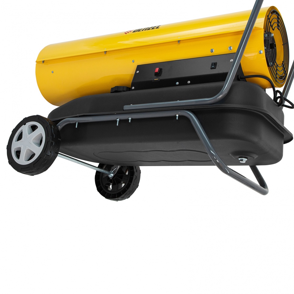 Удобство транспортировки — тепловая пушка оснащена ручкой и 2 колесами.