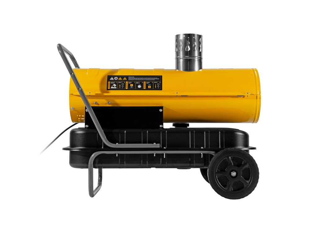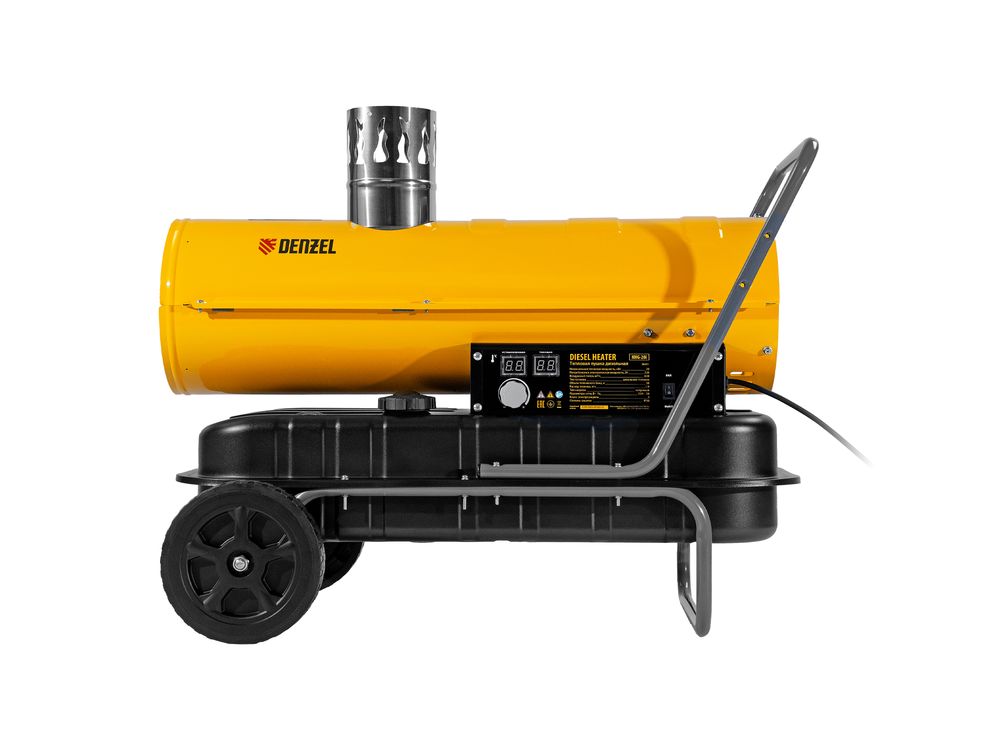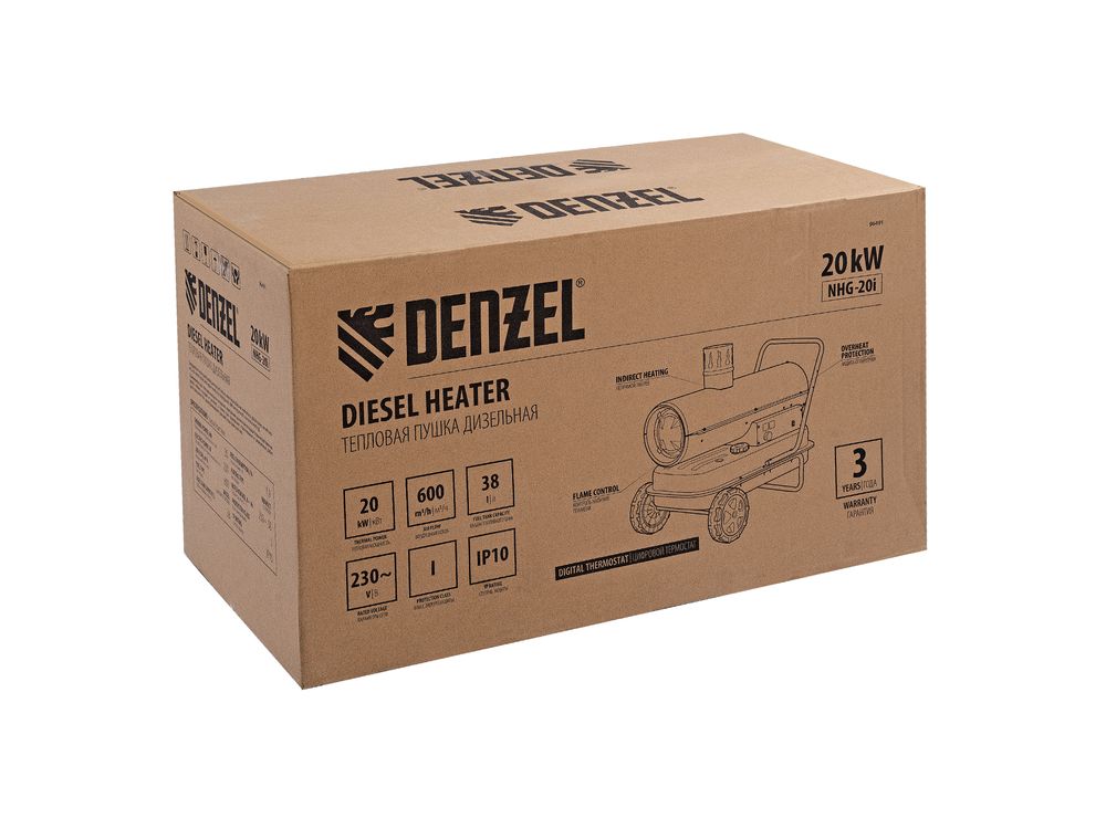 Дизельная тепловая пушка непрямого нагрева DENZEL NHG-20i 96491 с цифровым термостатом обладает тепловой мощностью 20 кВт и генерирует поток теплого воздуха 600 м3/ч. Предназначена для обогрева шатров, палаток, складов, а также технических помещений, ангаров, теплиц и строительных объектов. В работе пушки используется схема непрямого нагрева: при помощи отводного патрубка продукты горения можно полностью вывести за пределы помещения. Такое решение позволяет использовать устройство в присутствии людей.