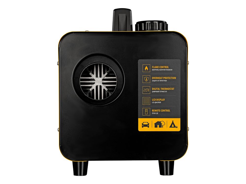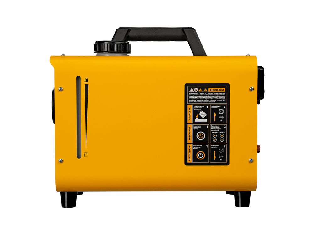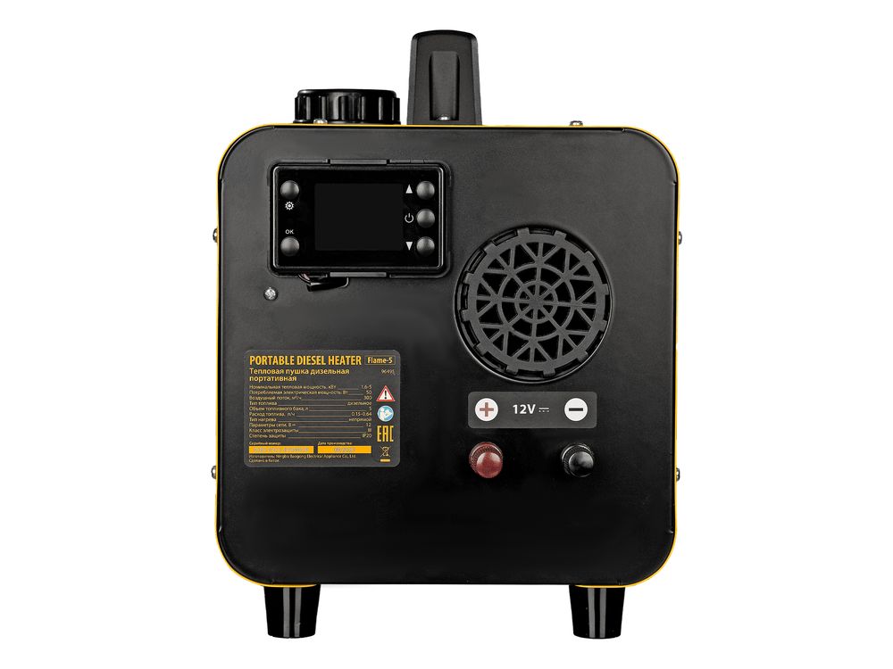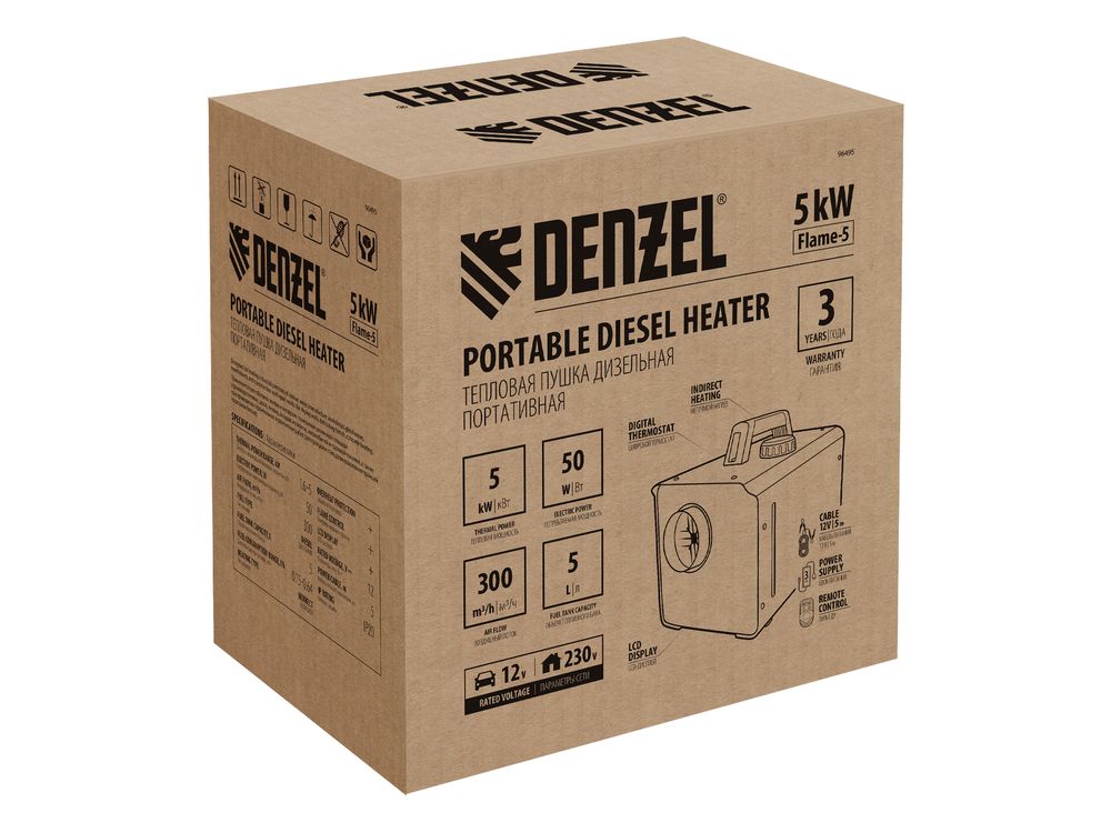 Дизельная тепловая портативная пушка Denzel Flame-5 96495 представляет собой автономный отопитель с максимальной мощностью 5 кВт, с цифровым термостатом. Работает по принципу непрямого нагрева, то есть выхлопные газы выводятся отдельно, не смешиваясь с потоком теплого воздуха. Предназначена для обогрева жилых, бытовых, подсобных и строительных помещений площадью до 50 м2. Портативную пушку размером 412 х 250 х 340 мм удобно перемещать и можно использовать в местах, удаленных от электричества, например, в поездке, походах, на рыбалке и для обогрева автомобиля.