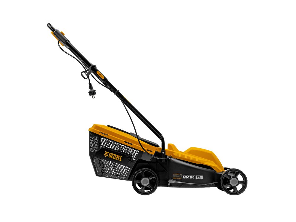 Газонокосилка электрическая Denzel GM-1100 96626 мощностью 1100 Вт, с травосборником объемом 30 л и 3 уровнями скашивания, обеспечивает ширину прохода 32 см и предназначена для стрижки газонов, кошения травы в саду и на небольшом приусадебном участке. Высота скашивания устанавливается на уровне 30, 50 или 70 мм в зависимости от типа газона. Газонокосилка проста в управлении и обслуживании, с ней легко справится неопытный пользователь.