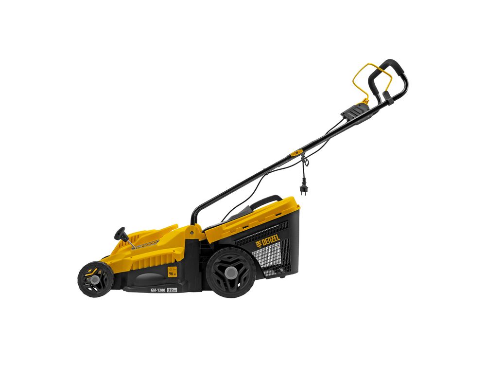 Газонокосилка электрическая Denzel GM-1300 96627 мощностью 1300 Вт, с травосборником объемом 35 л и 5 уровнями скашивания, обеспечивает ширину прохода 32 см и предназначена для стрижки газонов, кошения травы в саду и на небольшом приусадебном участке. Предусмотрена 5-ступенчатая регулировка высоты скашивания (от 30 до 70 мм) в зависимости от типа газона. Газонокосилка проста в управлении и обслуживании, с ней легко справится неопытный пользователь.